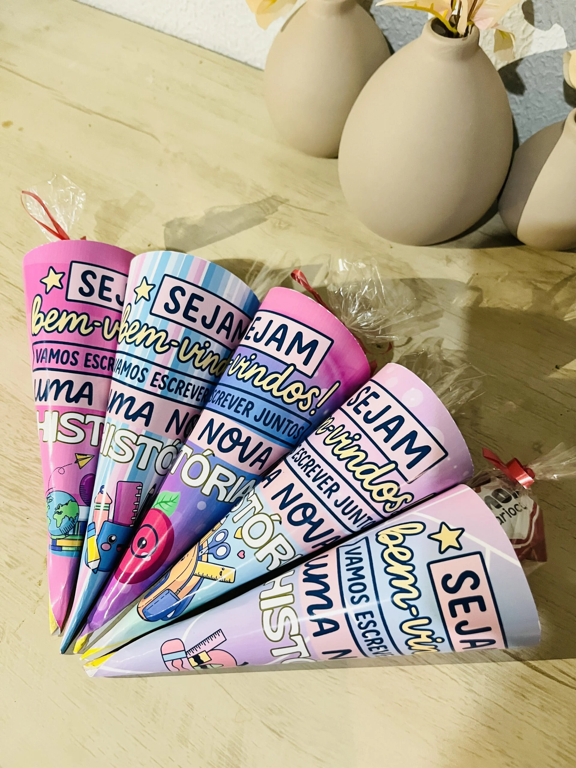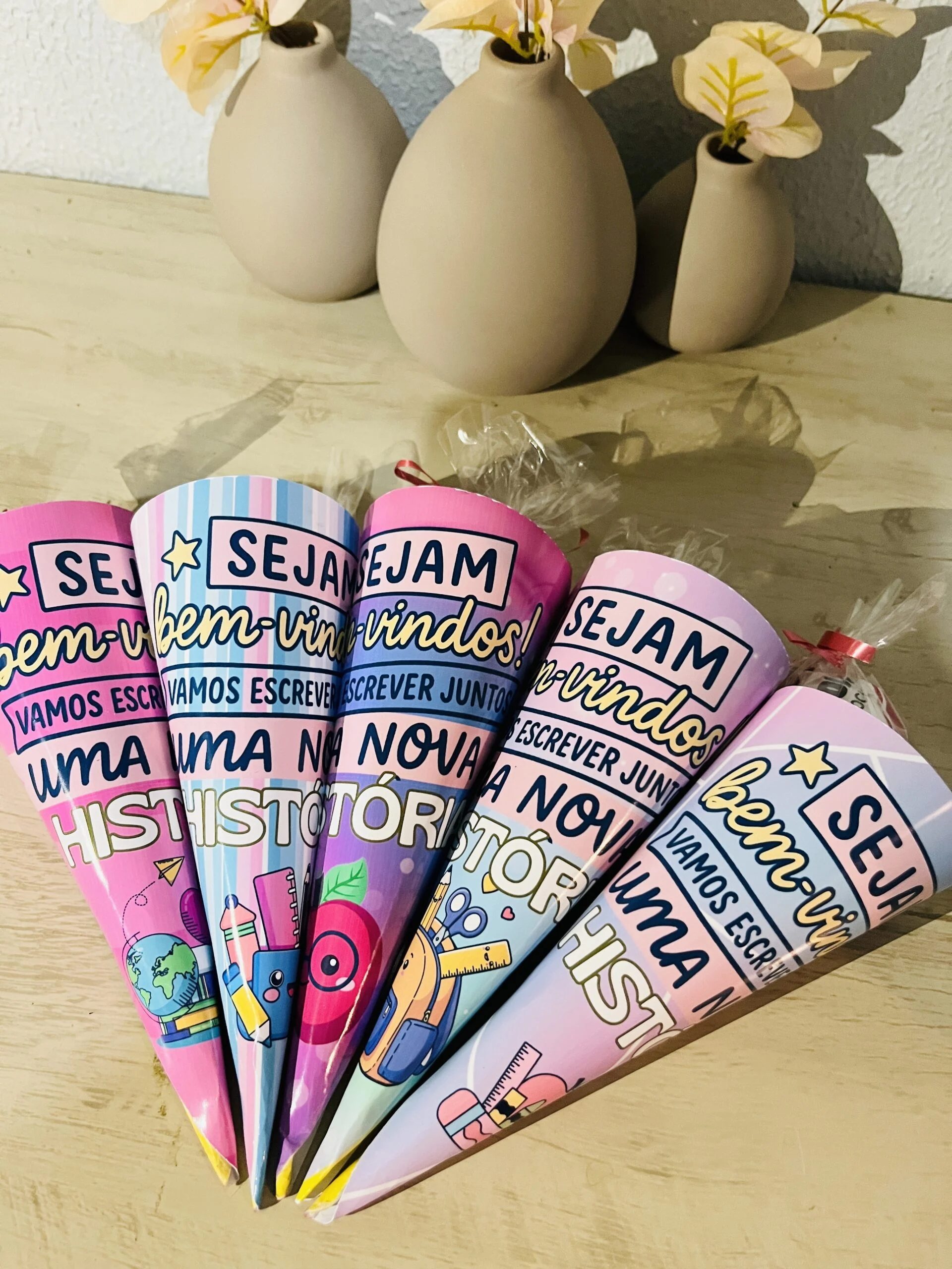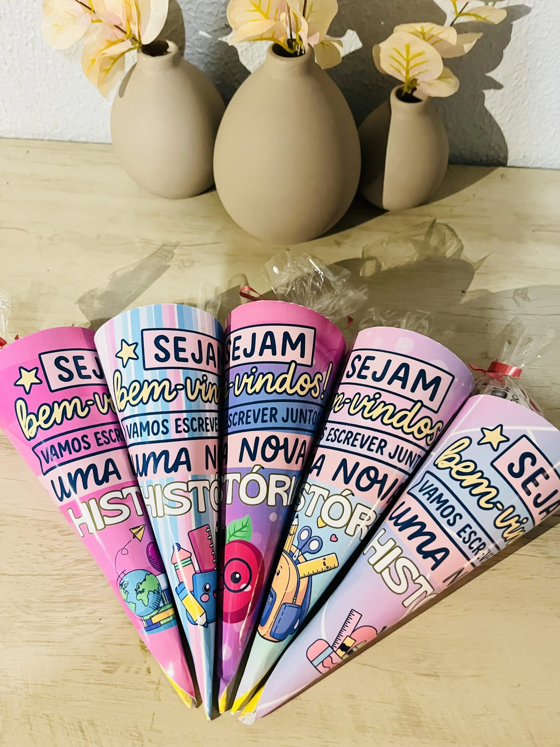 Os Cones Volta às Aulas são aquelas lembrancinhas que fazem os olhos das crianças brilharem logo no primeiro dia de escola. Pensados especialmente para acolher e receber a turma com carinho, eles podem ser usados para colocar doces, bilhetinhos ou pequenas surpresas, marcando o início de um novo ano letivo de forma especial.