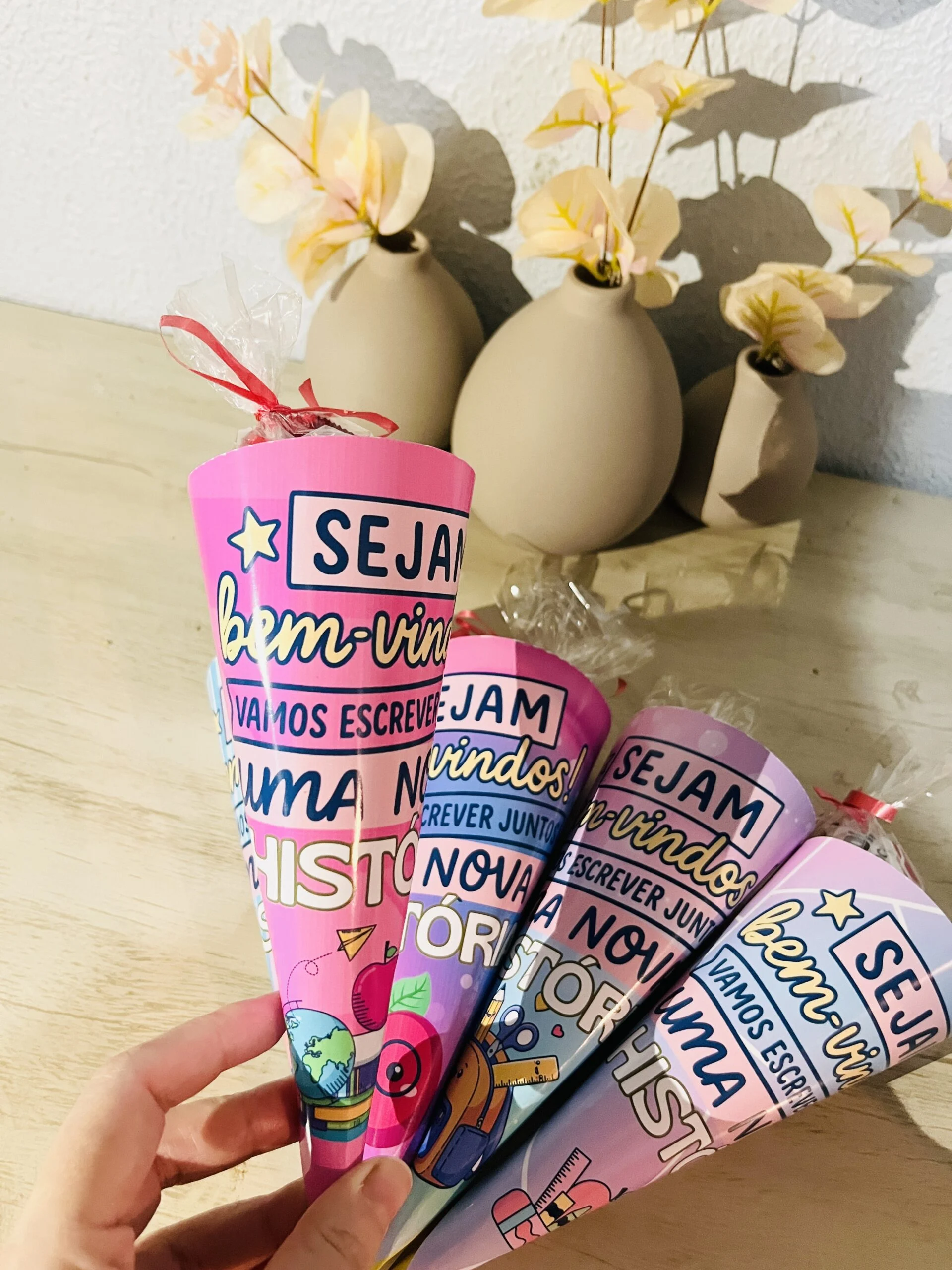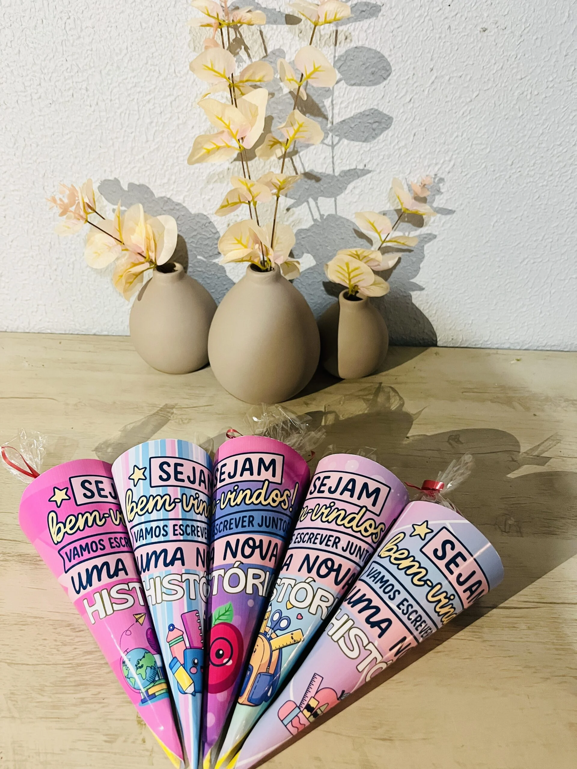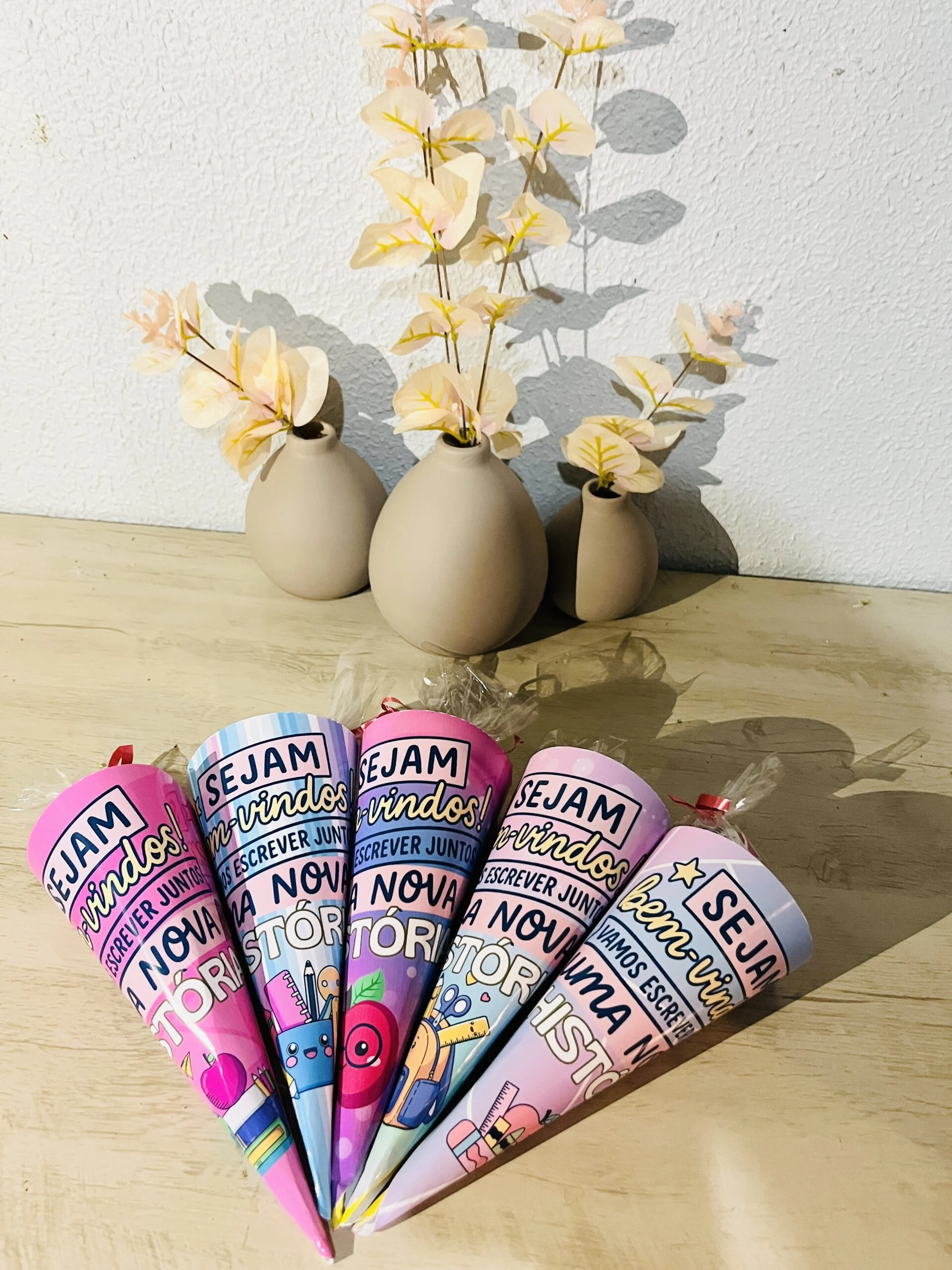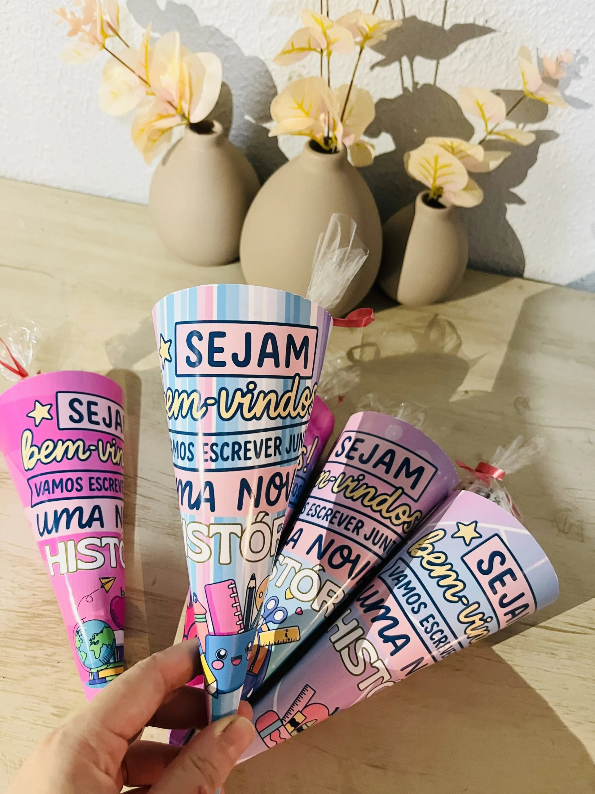 Os Cones Volta às Aulas são aquelas lembrancinhas que fazem os olhos das crianças brilharem logo no primeiro dia de escola. Pensados especialmente para acolher e receber a turma com carinho, eles podem ser usados para colocar doces, bilhetinhos ou pequenas surpresas, marcando o início de um novo ano letivo de forma especial.