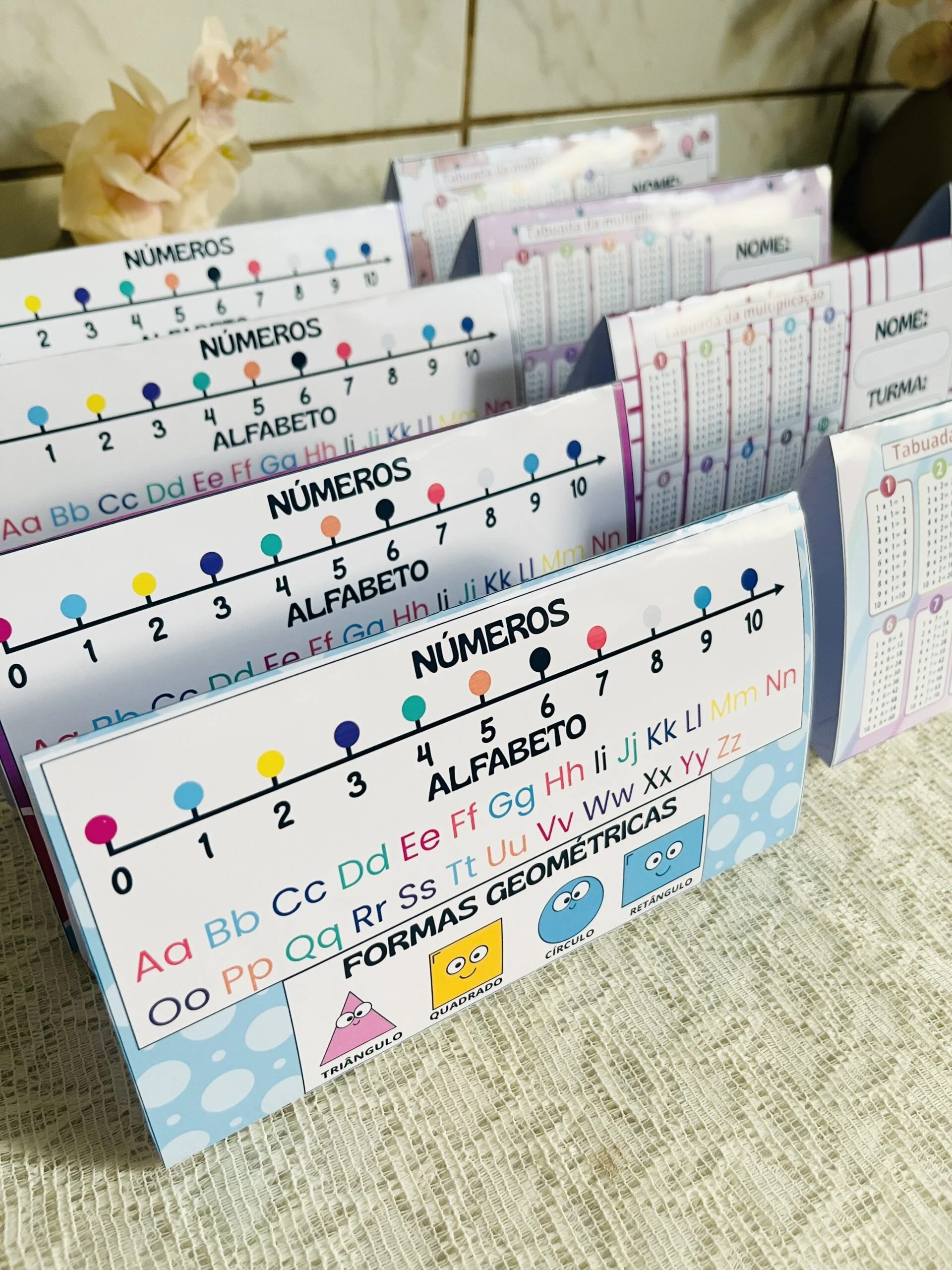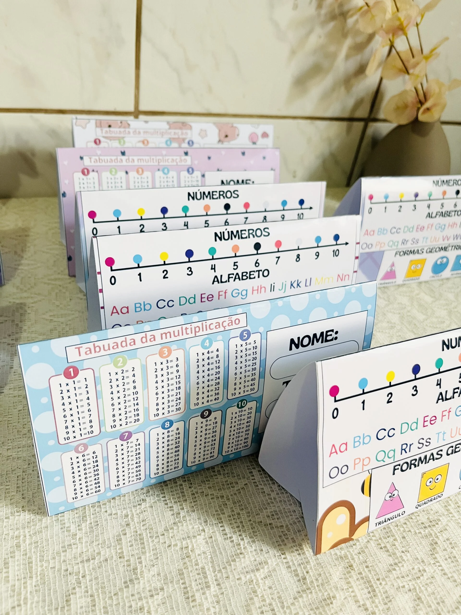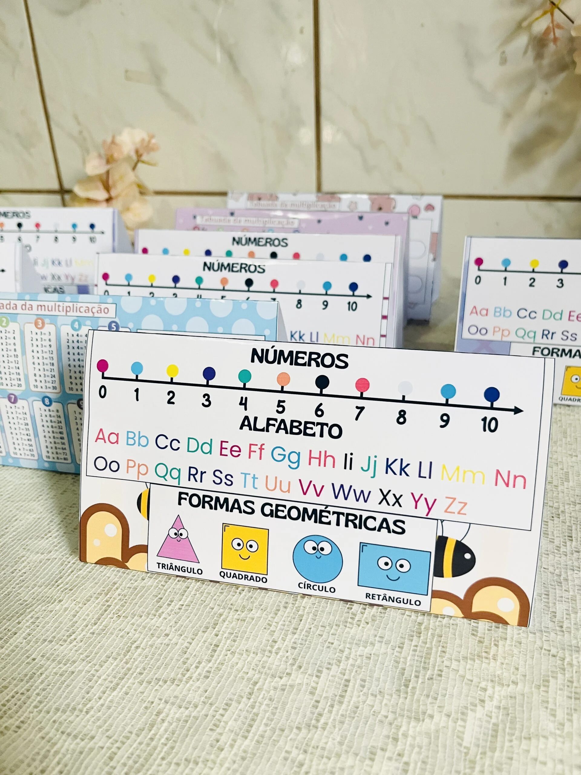 Crachás de Mesa – Com Alfabeto, Números, Formas e Tabuada
