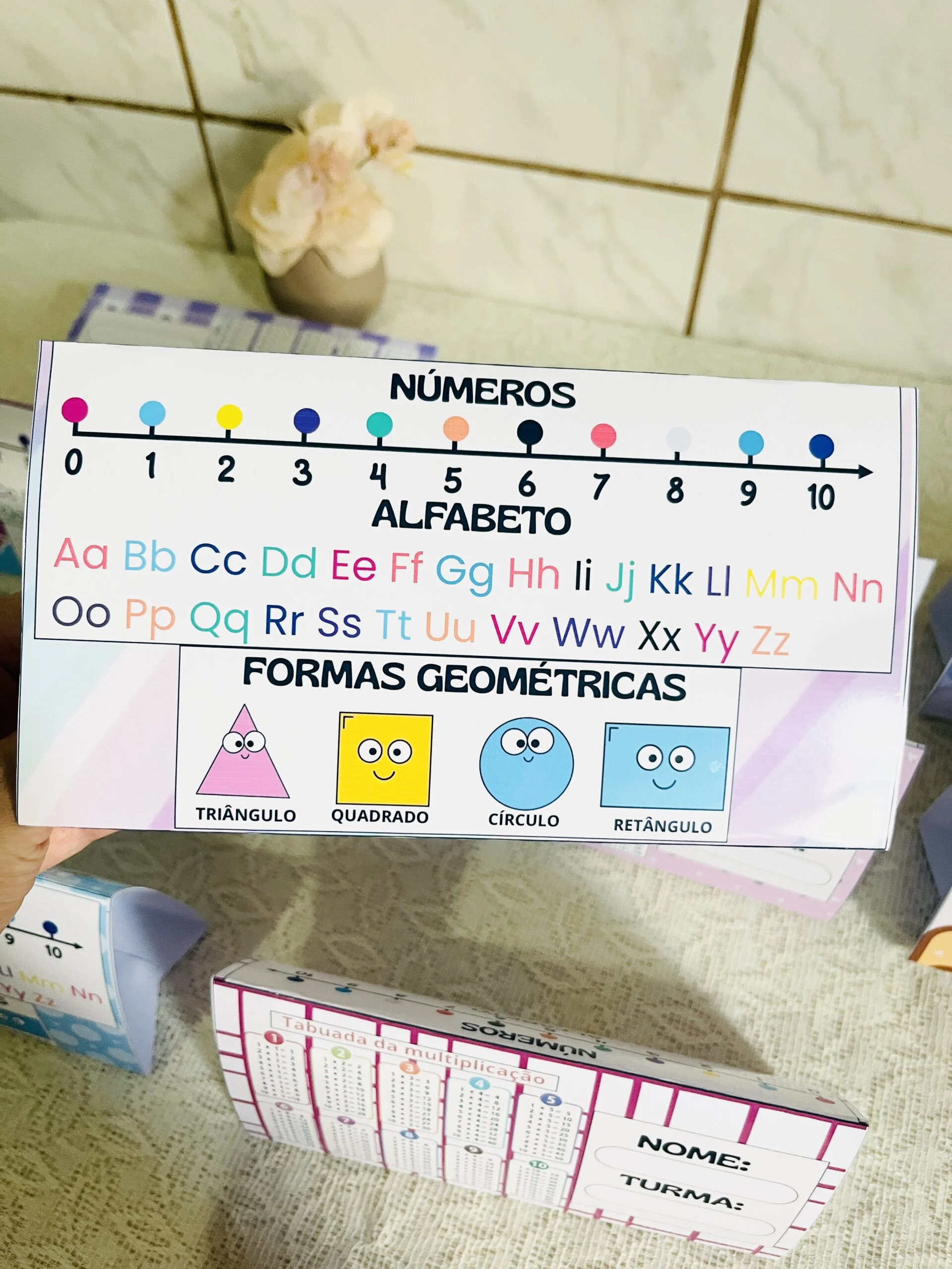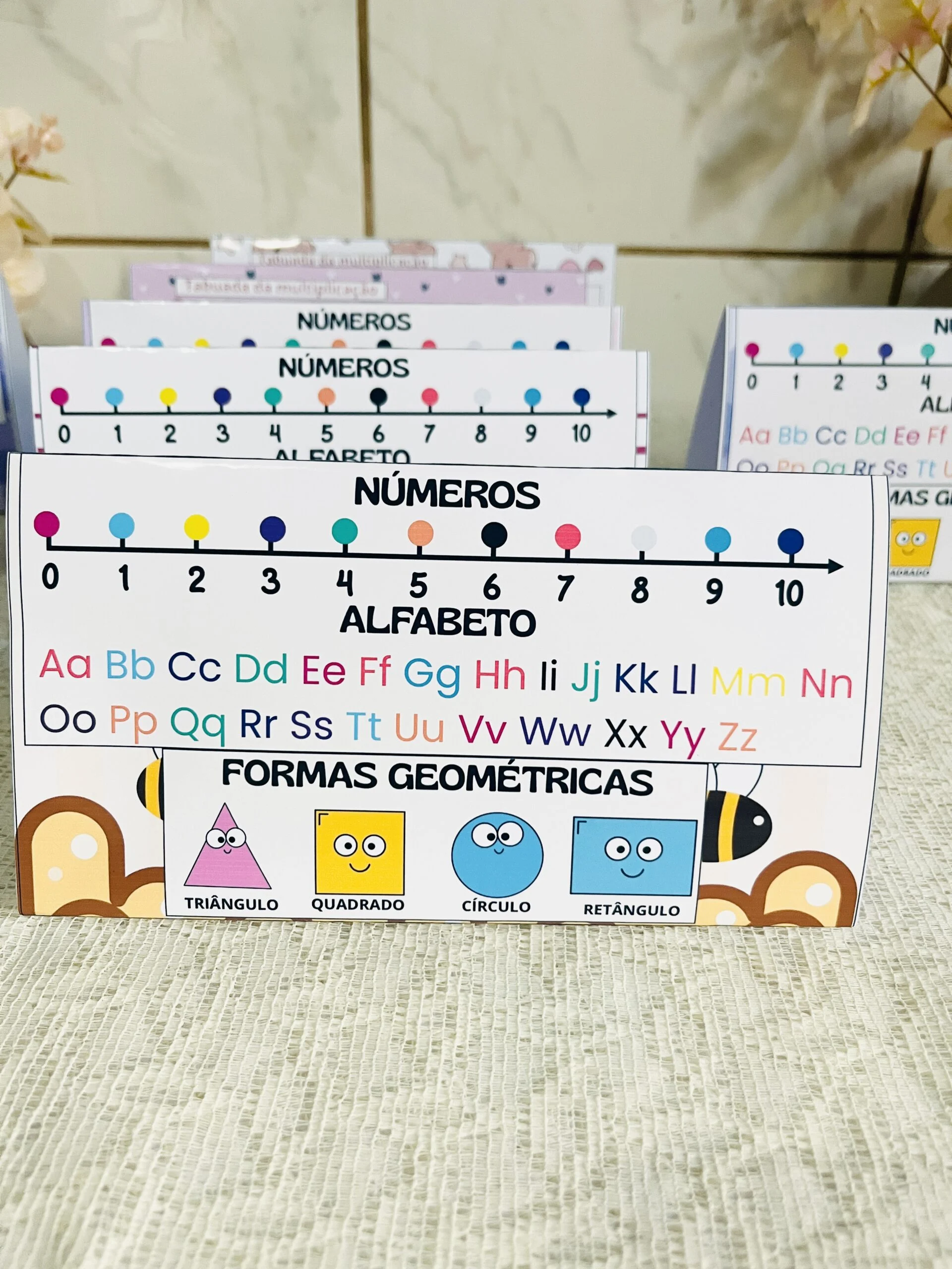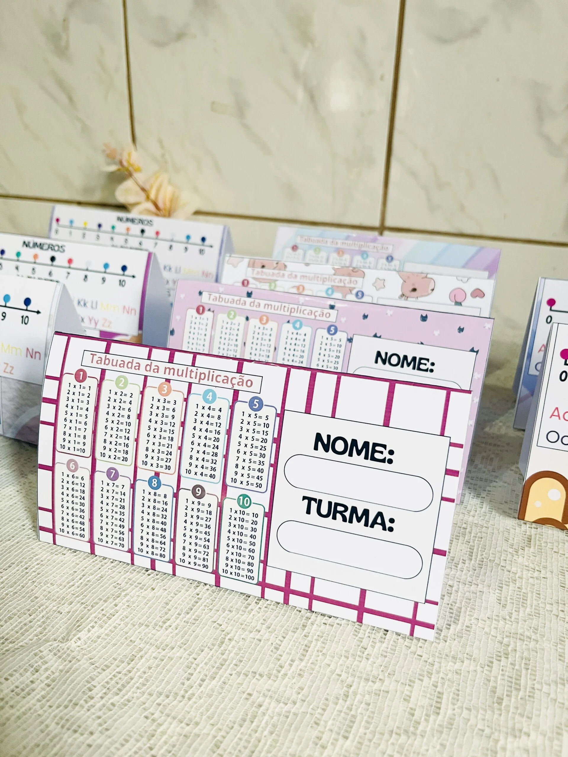 Crachás de Mesa – Com Alfabeto, Números, Formas e Tabuada