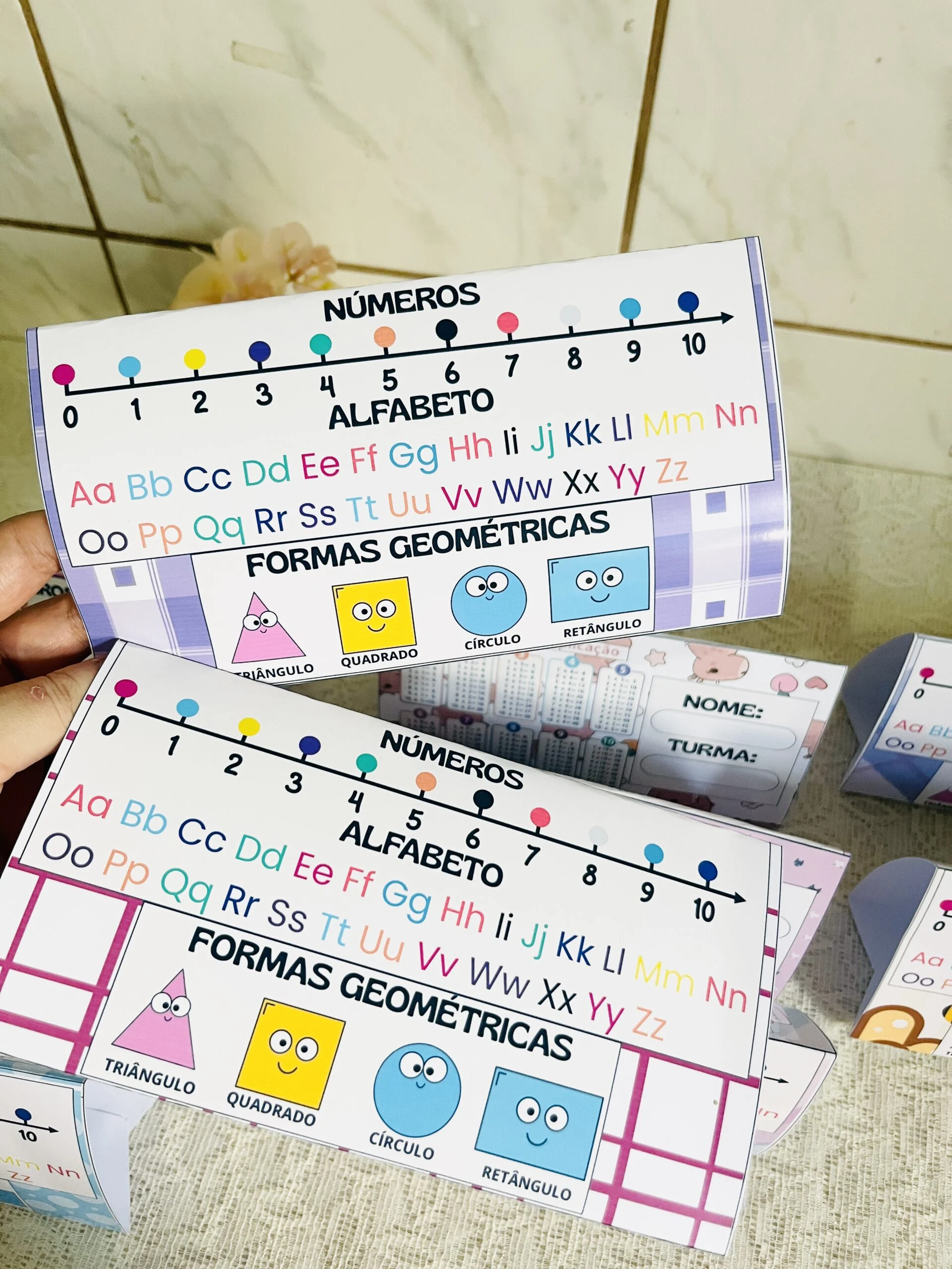 ✏️ Espaço para nome e turma – identifica o aluno e ajuda nas dinâmicas de chamada, fila, organização dos lugares e acolhimento.