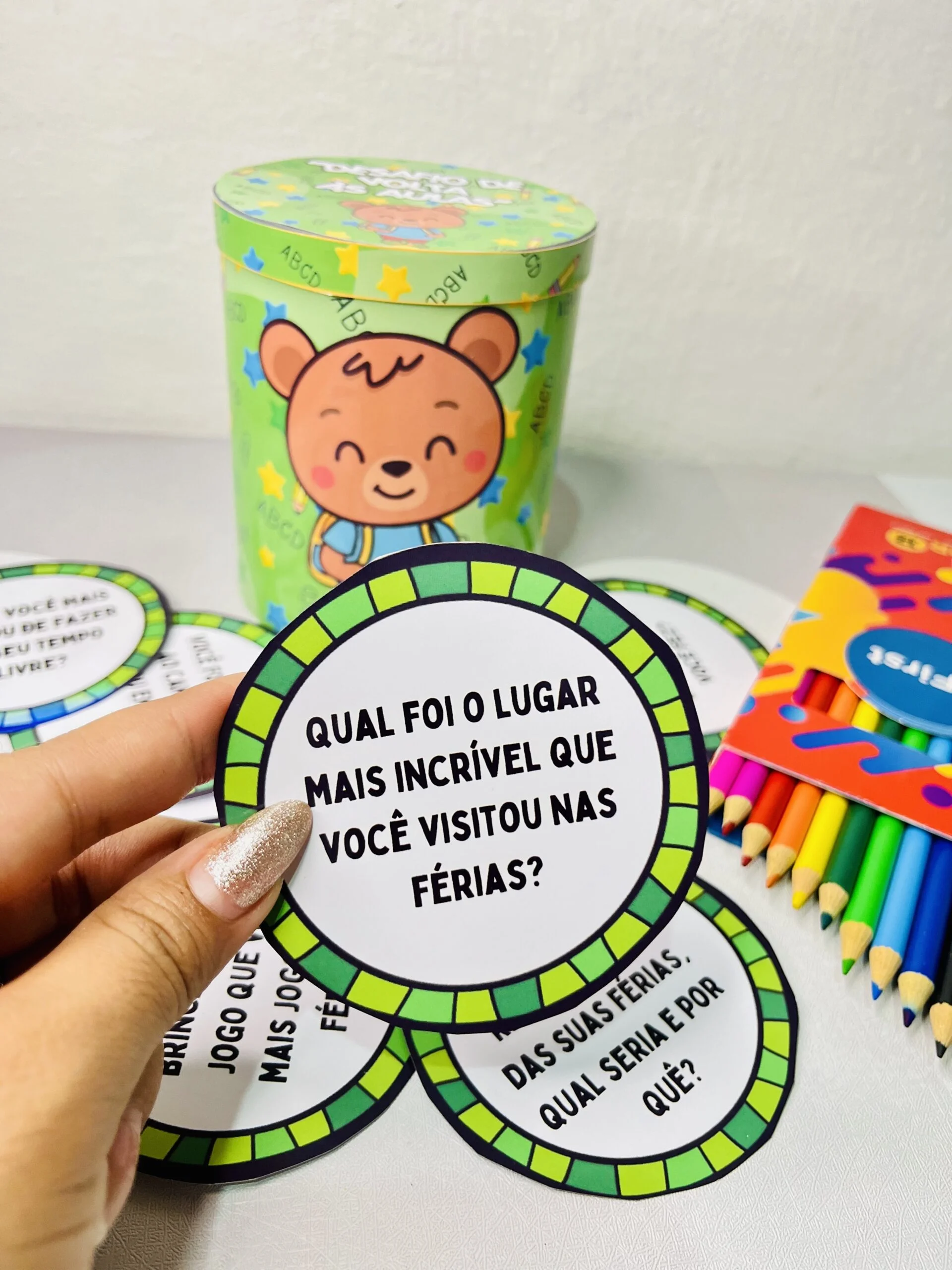 Revisão de conteúdos de forma criativa – as perguntas podem se conectar a temas escolares já trabalhados, ajudando a retomar conteúdos a partir das vivências pessoais.