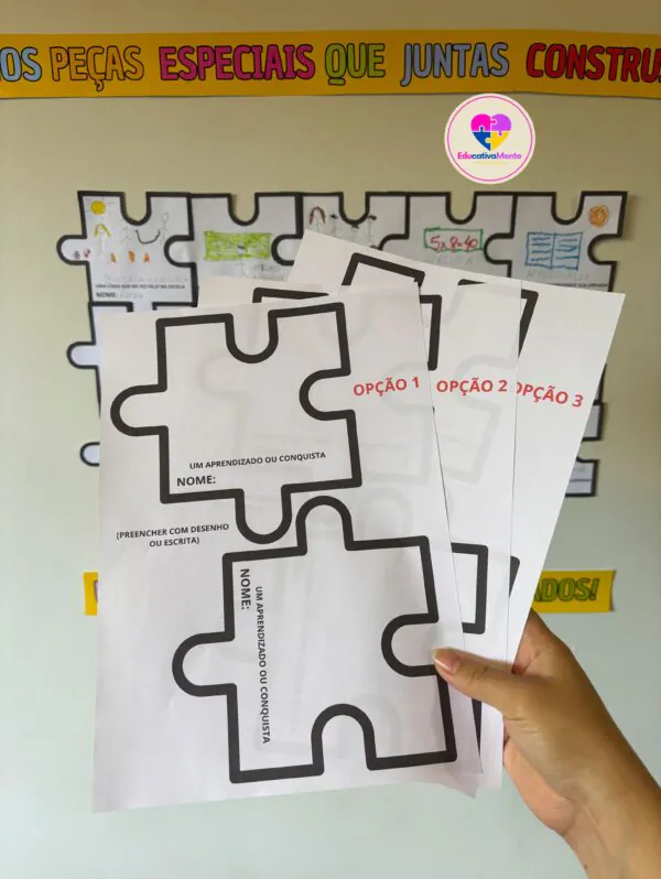 ✅ Três modelos de peças de quebra-cabeça para os alunos preencherem: