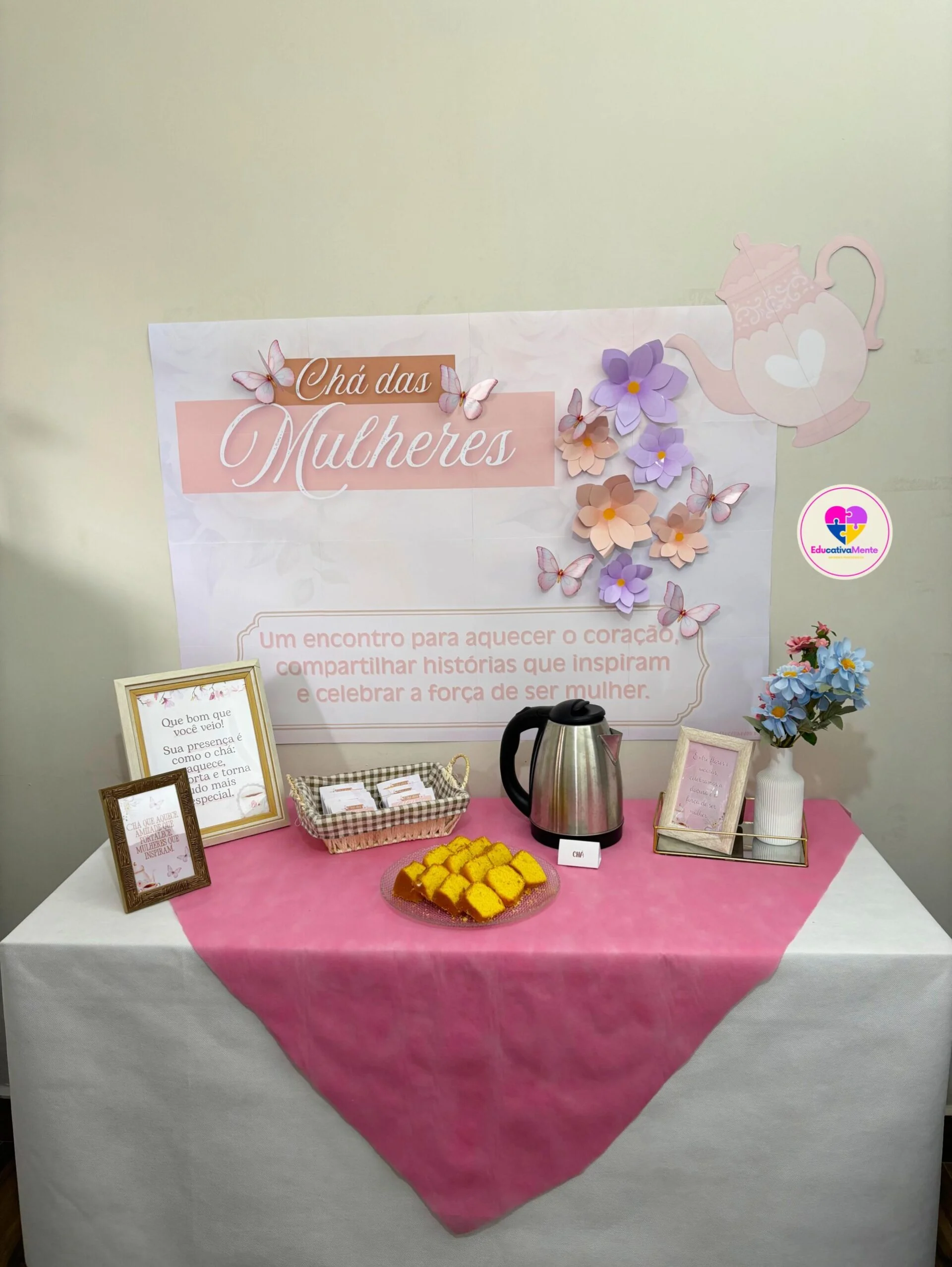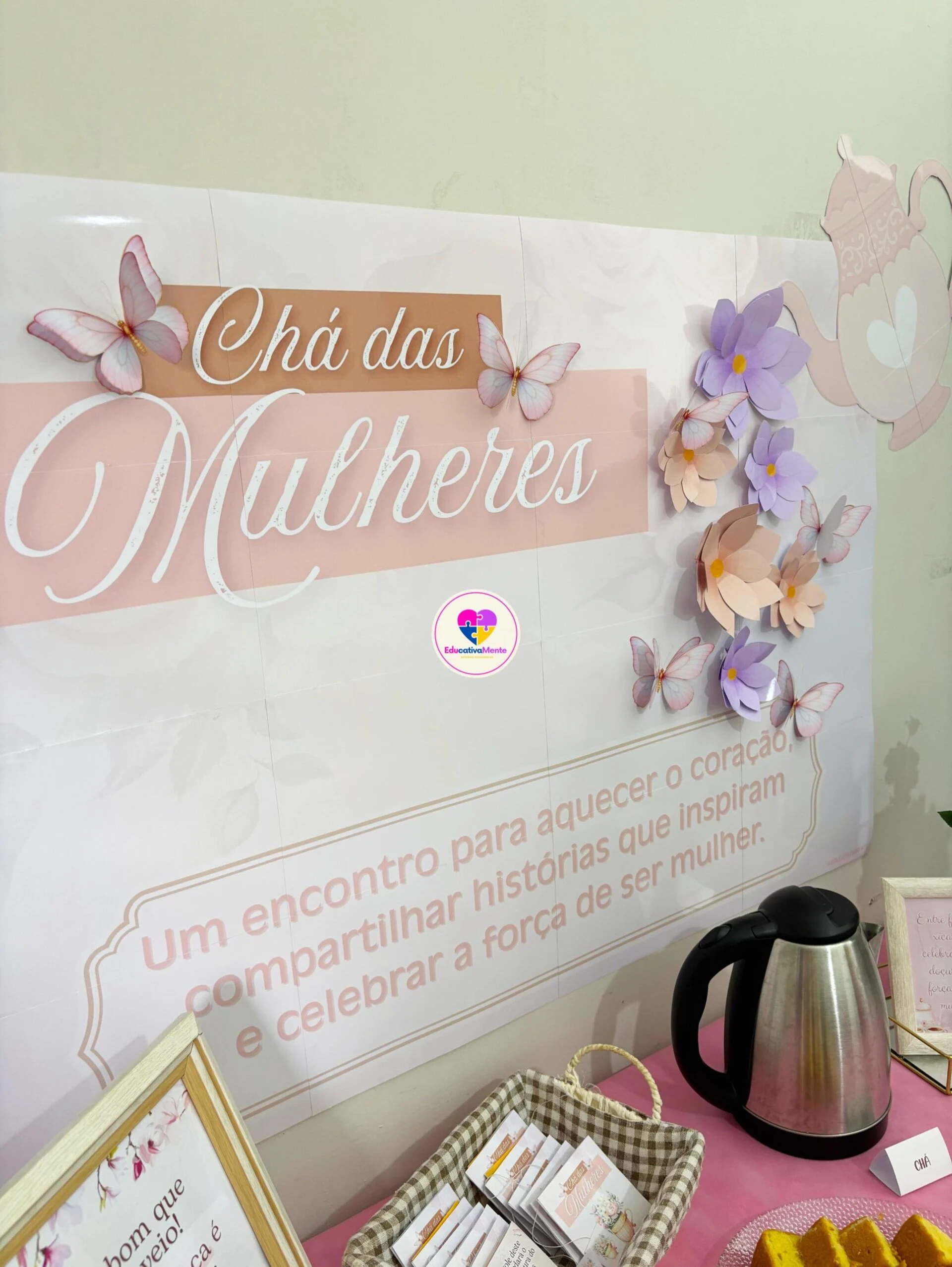 ✅ Painel Chá das Mulheres – dividido em 16 folhas A4, fácil de imprimir e montar;