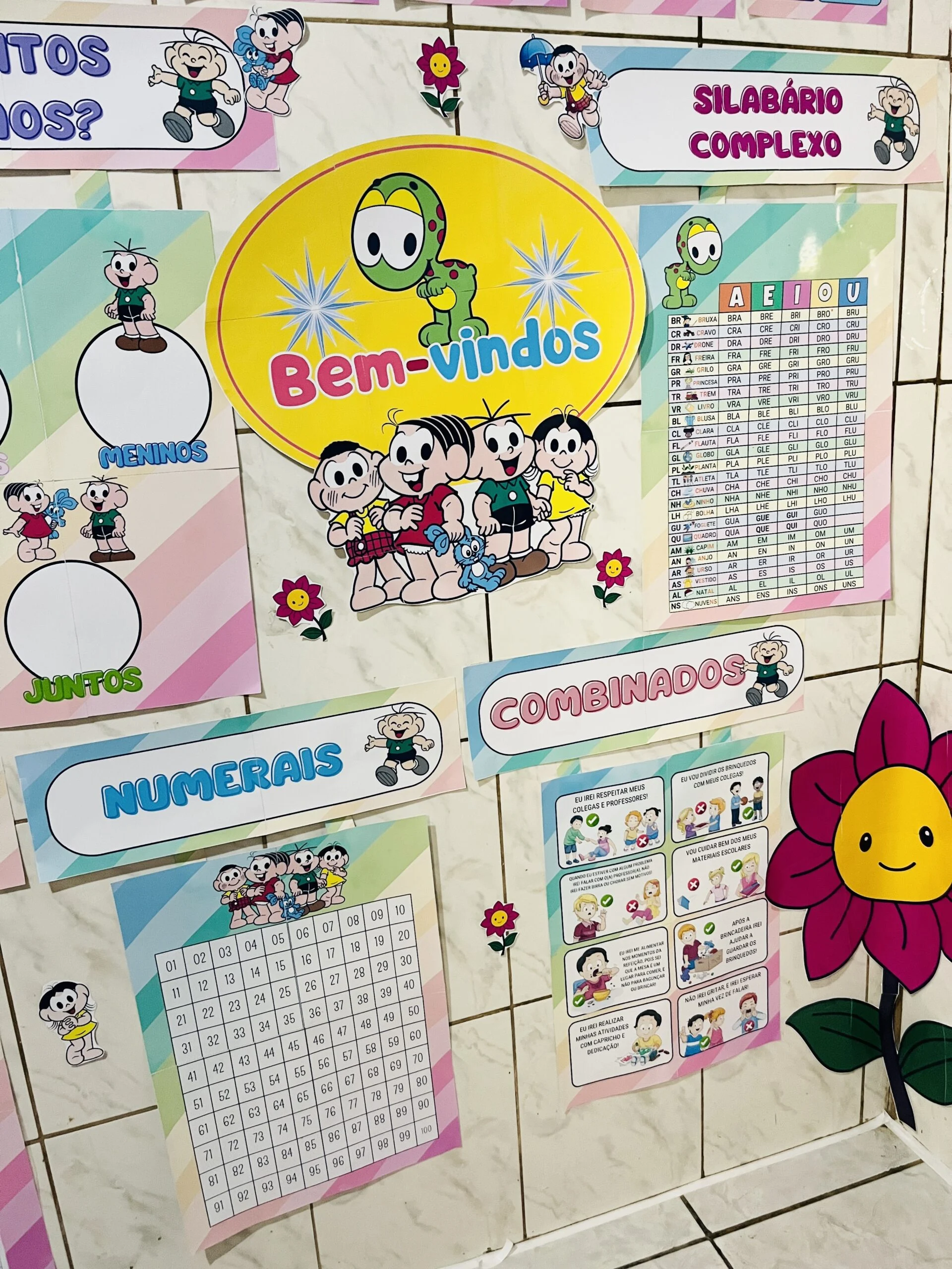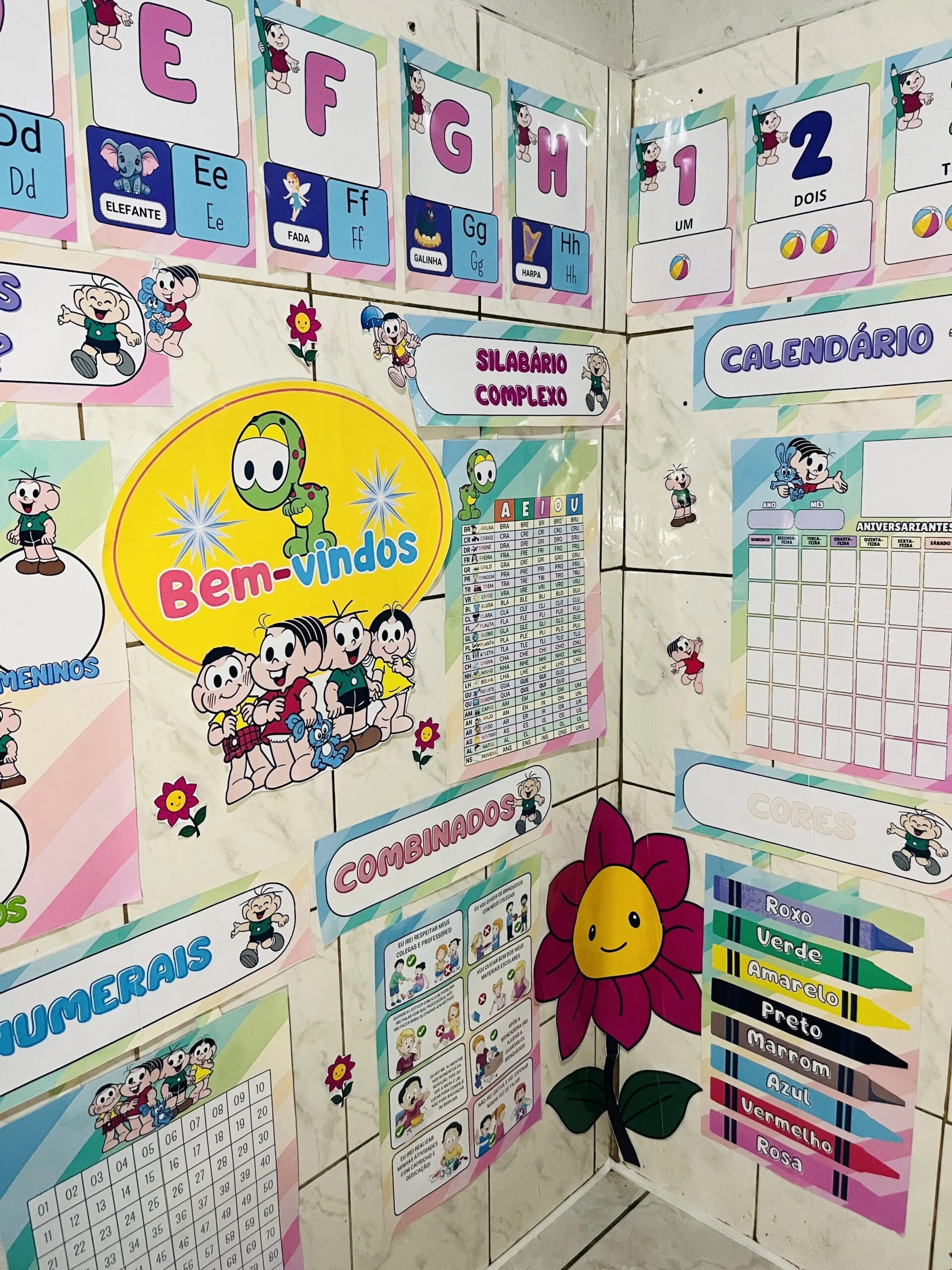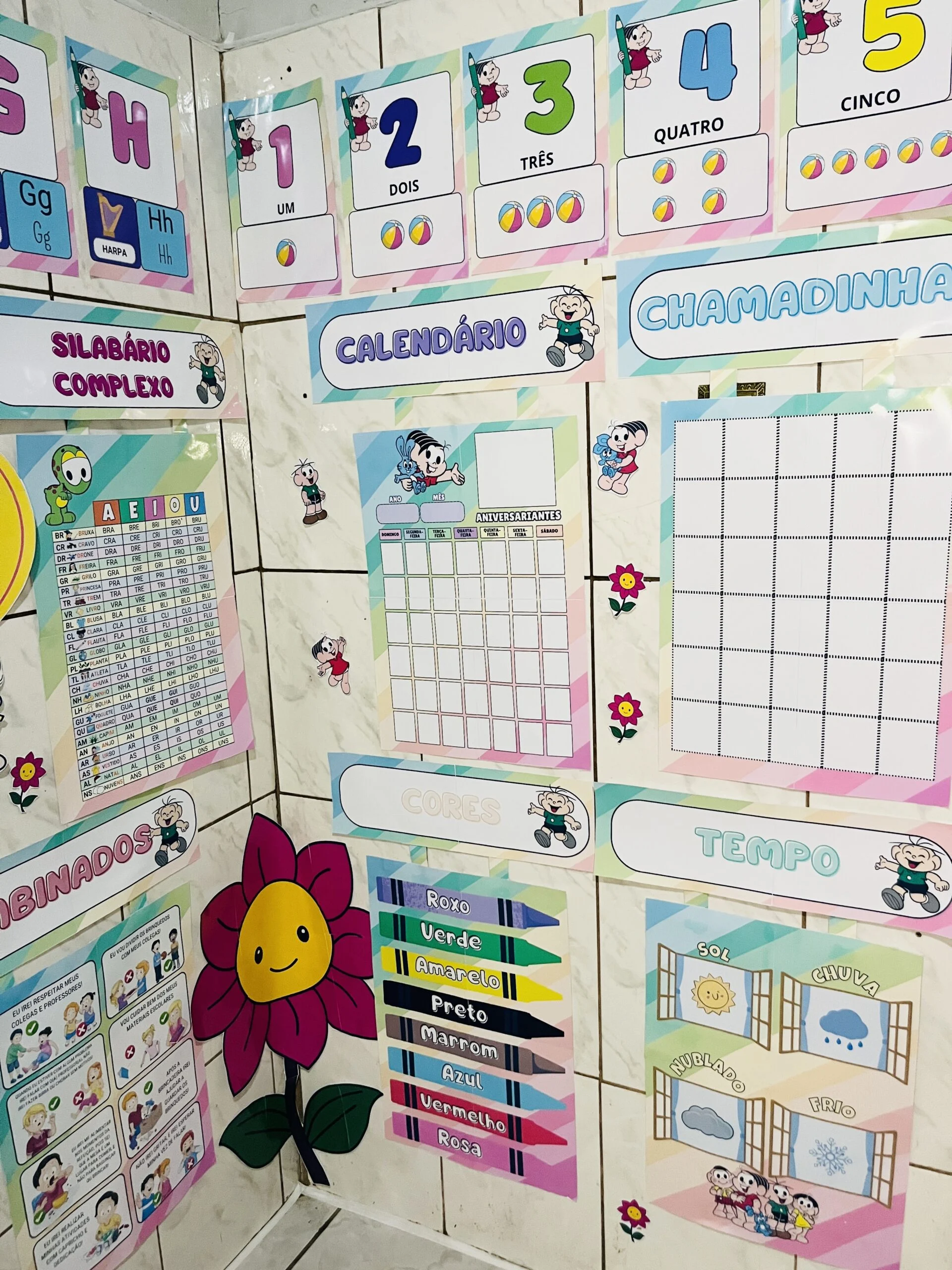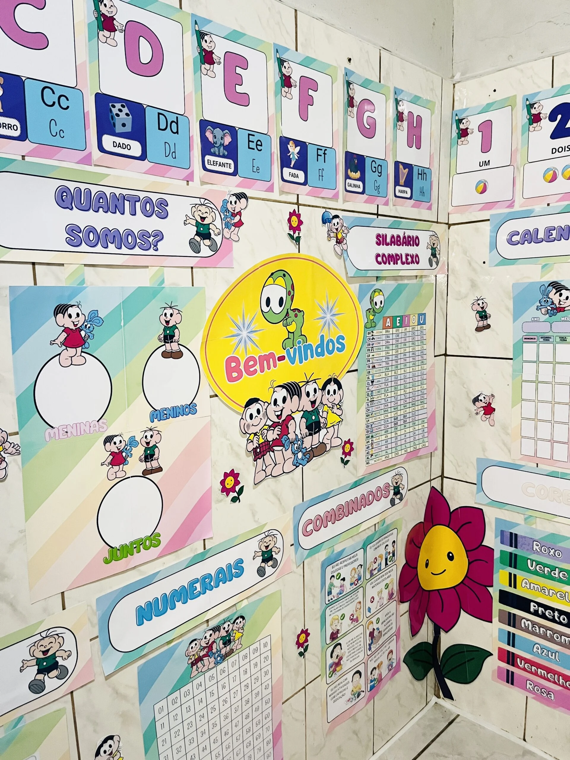 O Kit Sala Turma da Mônica – Modelo 2 foi pensado para quem deseja uma sala visualmente atrativa e, ao mesmo tempo, funcional para trabalhar rotina, leitura e matemática com as crianças. Todos os recursos foram ampliados para garantir boa visualização em sala, favorecendo a participação e o uso no dia a dia.