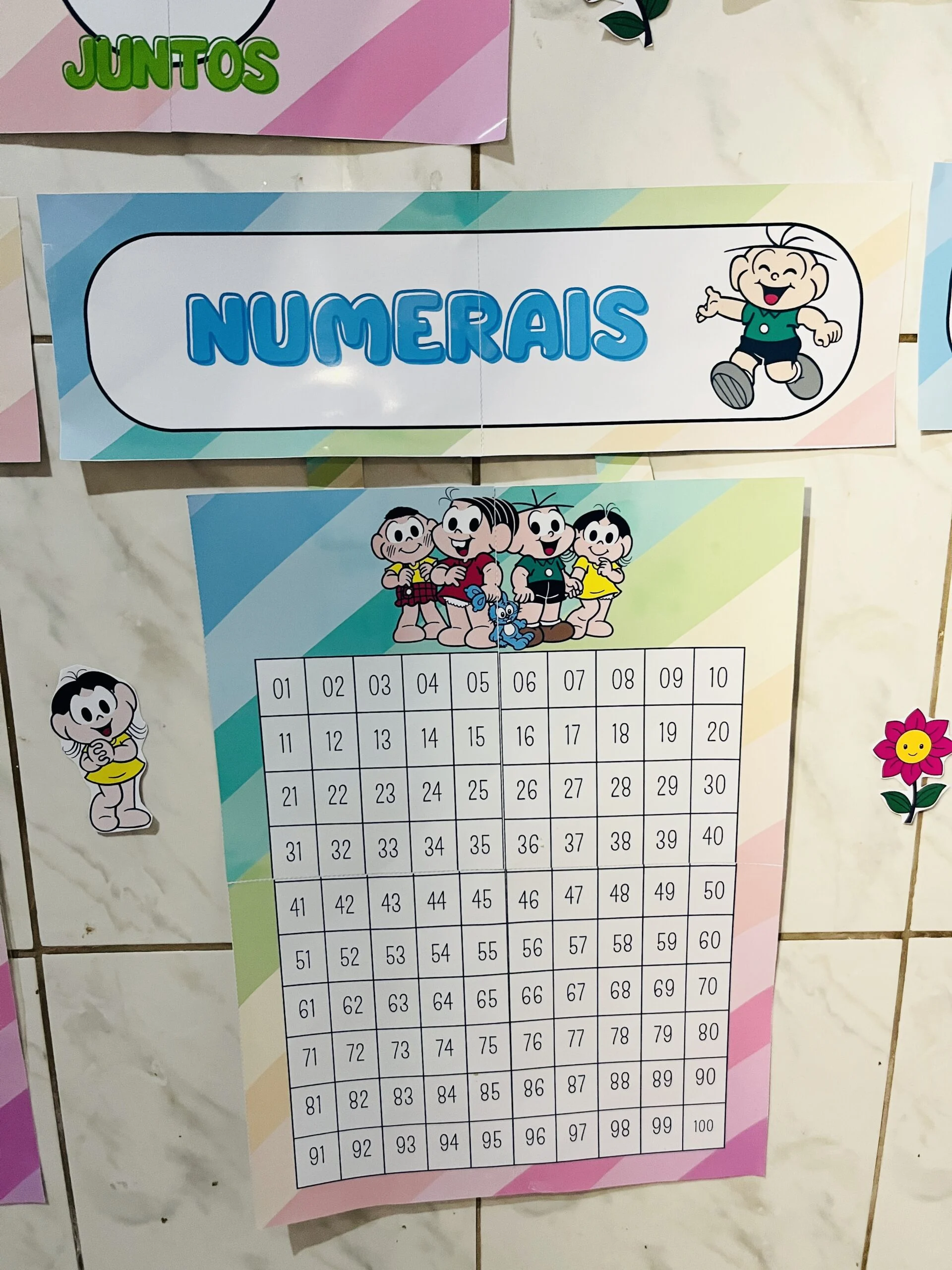 🔢 Numerais até 100 – suporte visual para contagem, sequência numérica e atividades matemáticas variadas.
